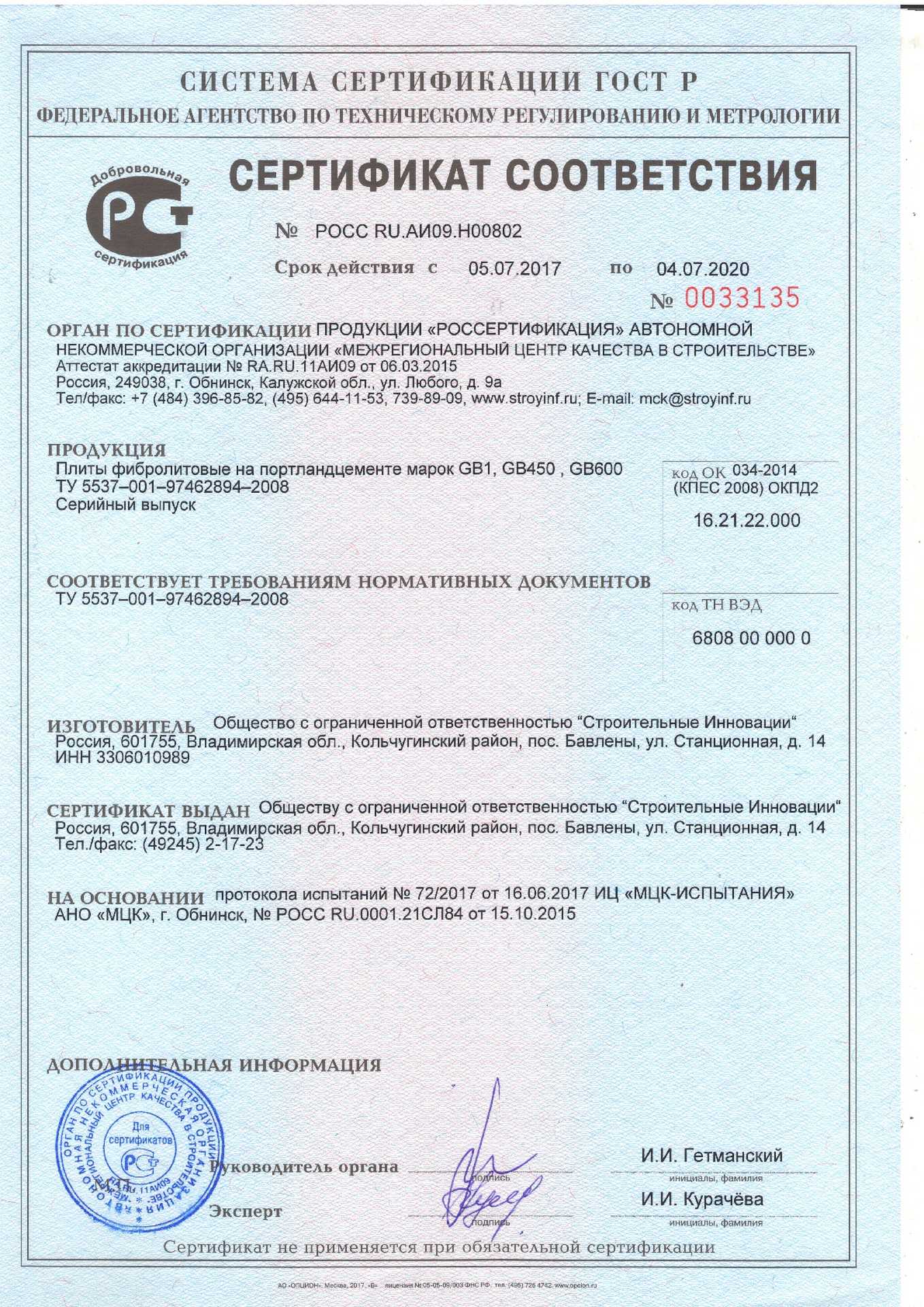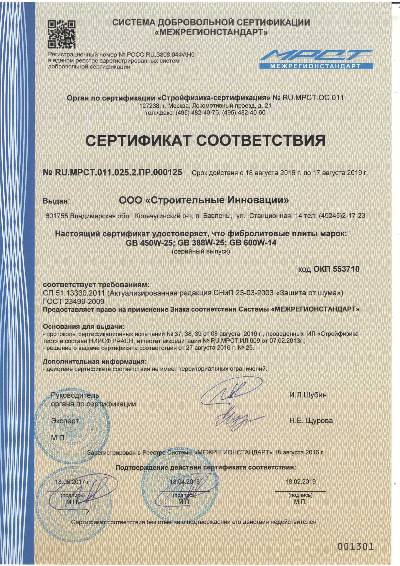 Подтвержденное сертификатами и действующими ГОСТ